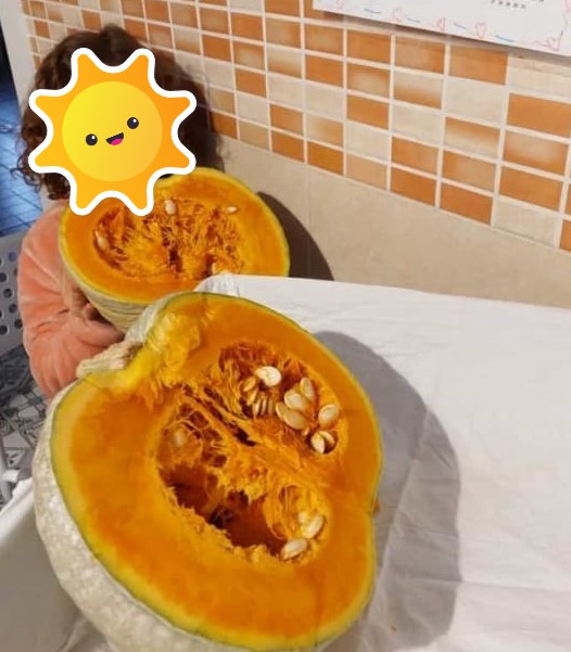 Berta vende calabaza ecológica cultivada por su bisabuelo de noventa y seis años que continúa cuidando su huerto.