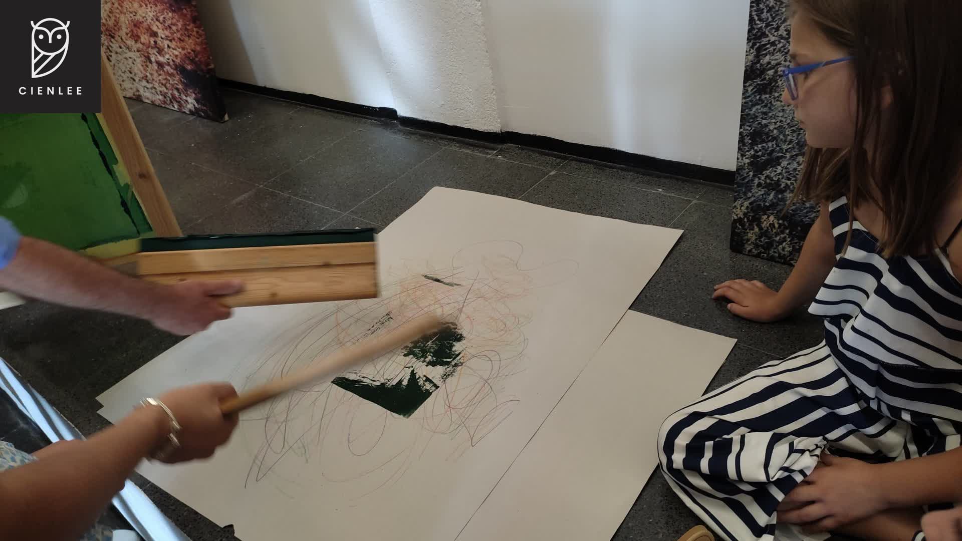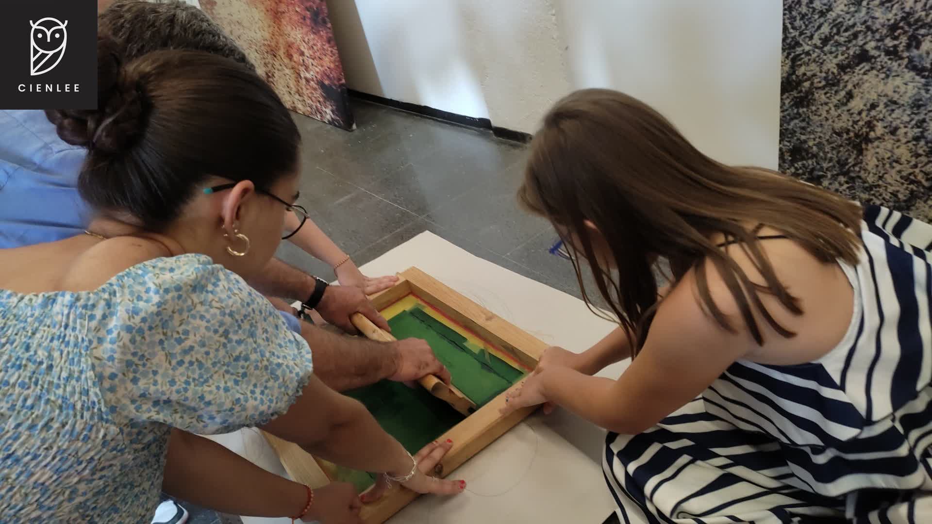 Los chicos Cienlee tuvieron la oportunidad de conversar y conocer al artista, quien se mostró muy interesado por su visita e interés en su obra y posteriormente, Rafa Angulo realizó una demostración especial de serigrafía en la que participaron los niños y jóvenes de Cienlee con mucho entusiasmo.