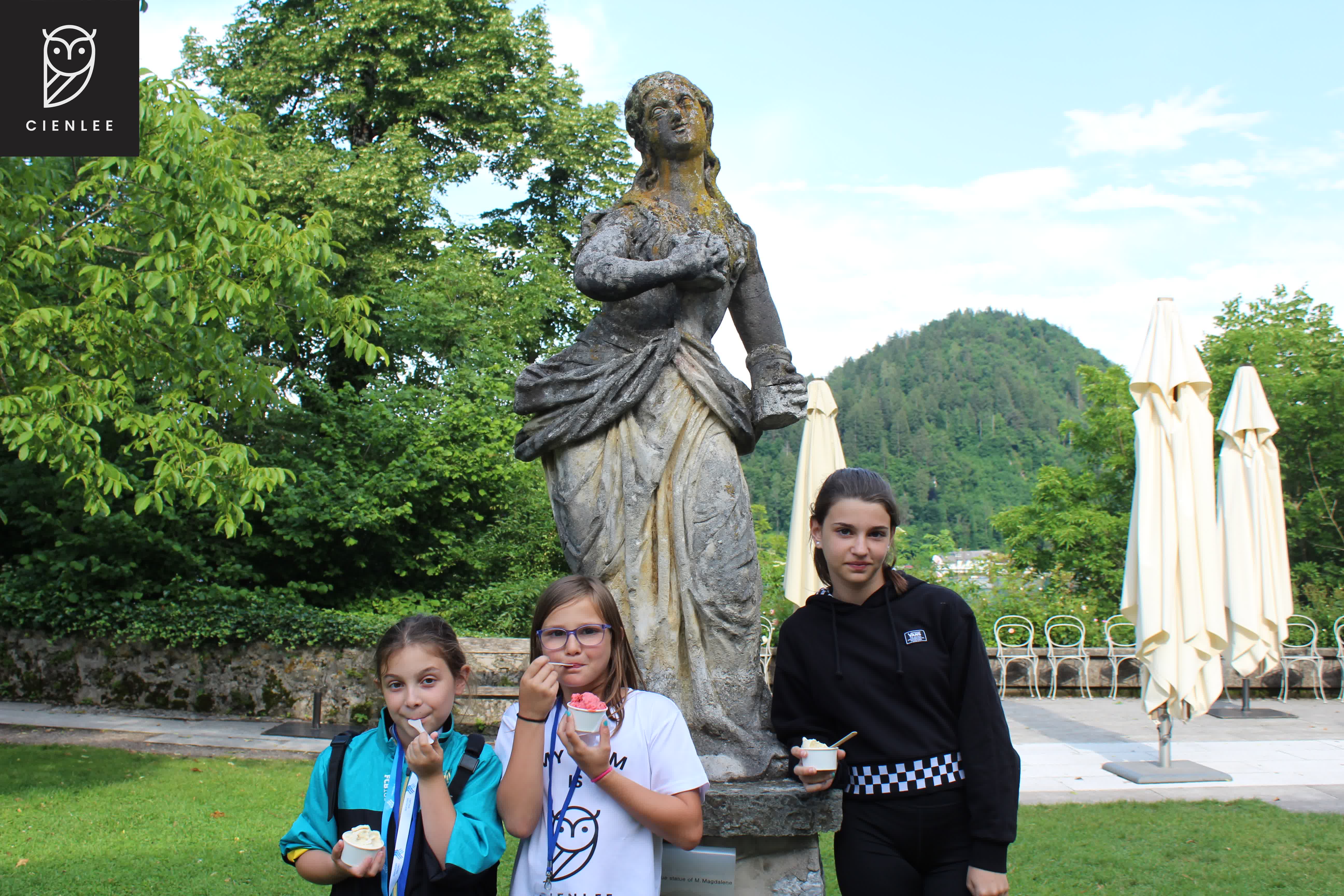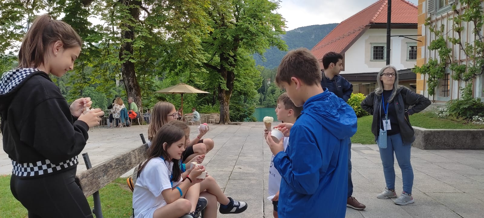 A nuestra llegada a Bled teníamos un gran sorpresa: ¡nos esperaba Klarisa Jovanović la autora de Nikolai el gimnasta y un ladrón muy plasta! Nos agradeció la visita y el interés que tenían los niños y jóvenes por la literatura; acompañándonos por el resto de nuestra «expedición» por Bled y su famoso lago.