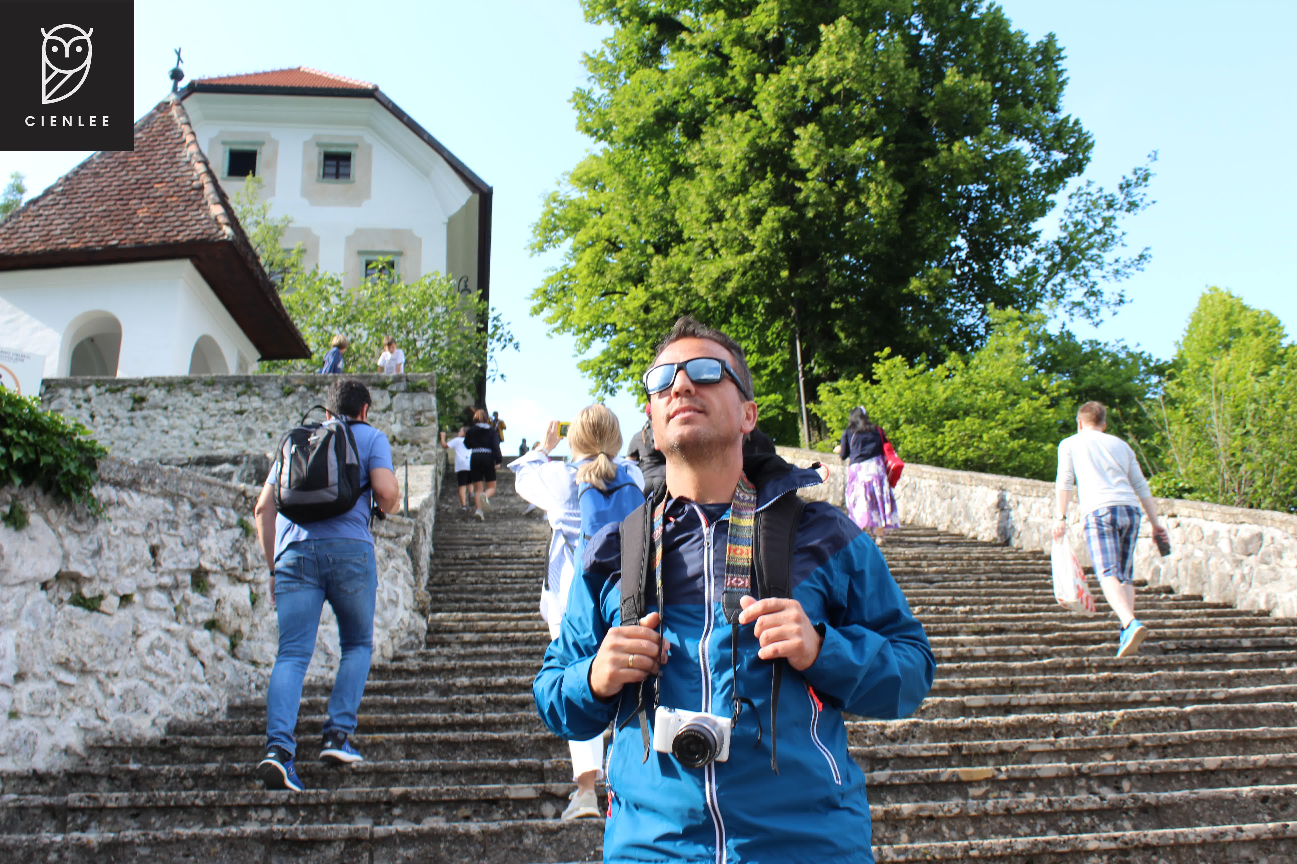 Una vez llegamos a la isla de Bled, vimos sus imponentes noventa y nueve escalones de piedra que había que superar si queríamos llegar al patio de la iglesia. Hay una tradición eslovena que cuenta que el novio debe subir en brazos a la novia por los noventa y nueve escalones si quiere casarse allí. ¡Qué ricos que estaban los helados de Bled!