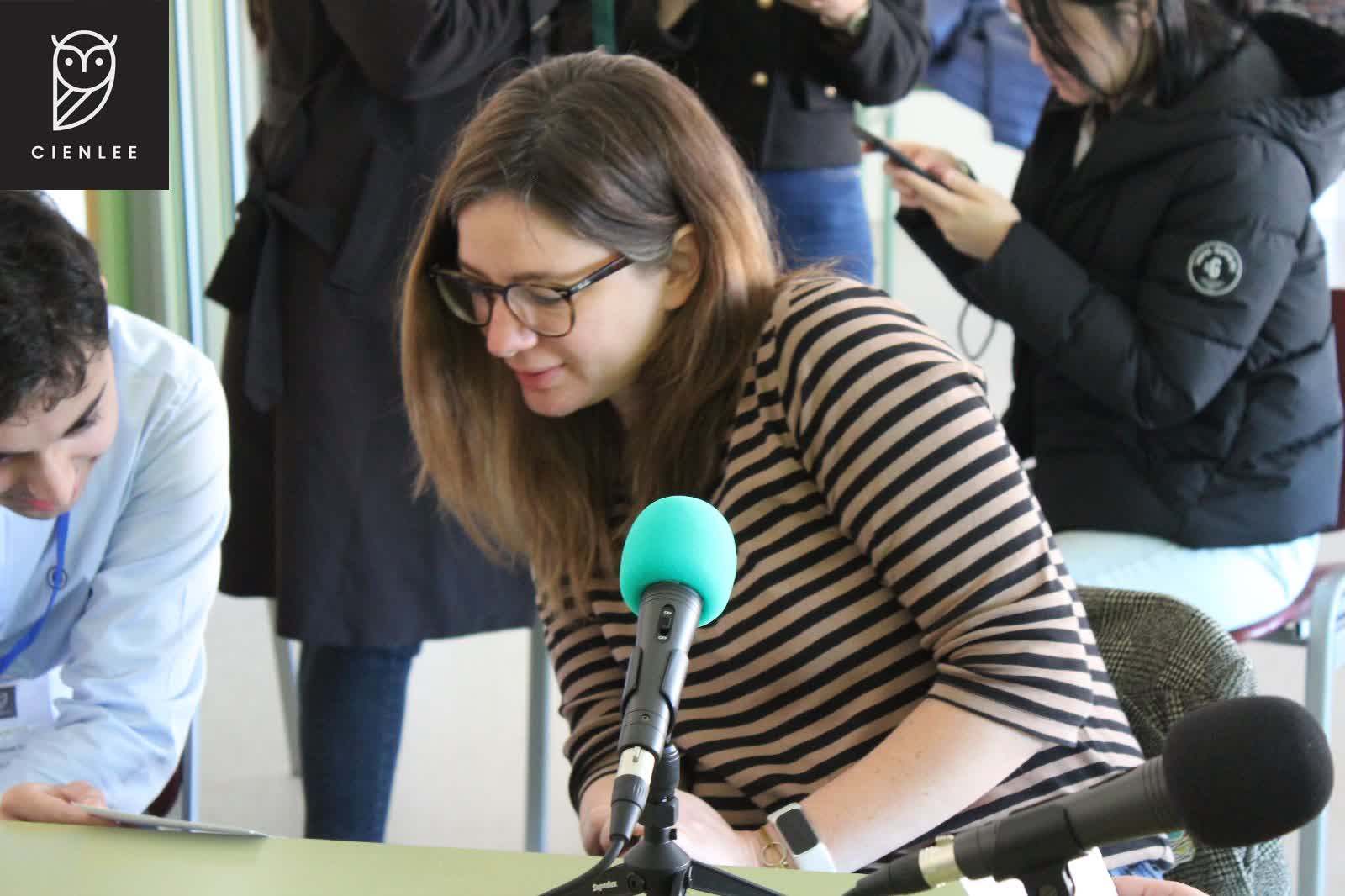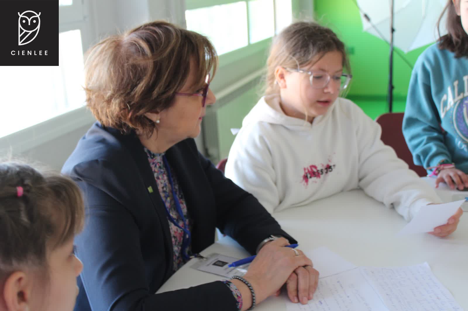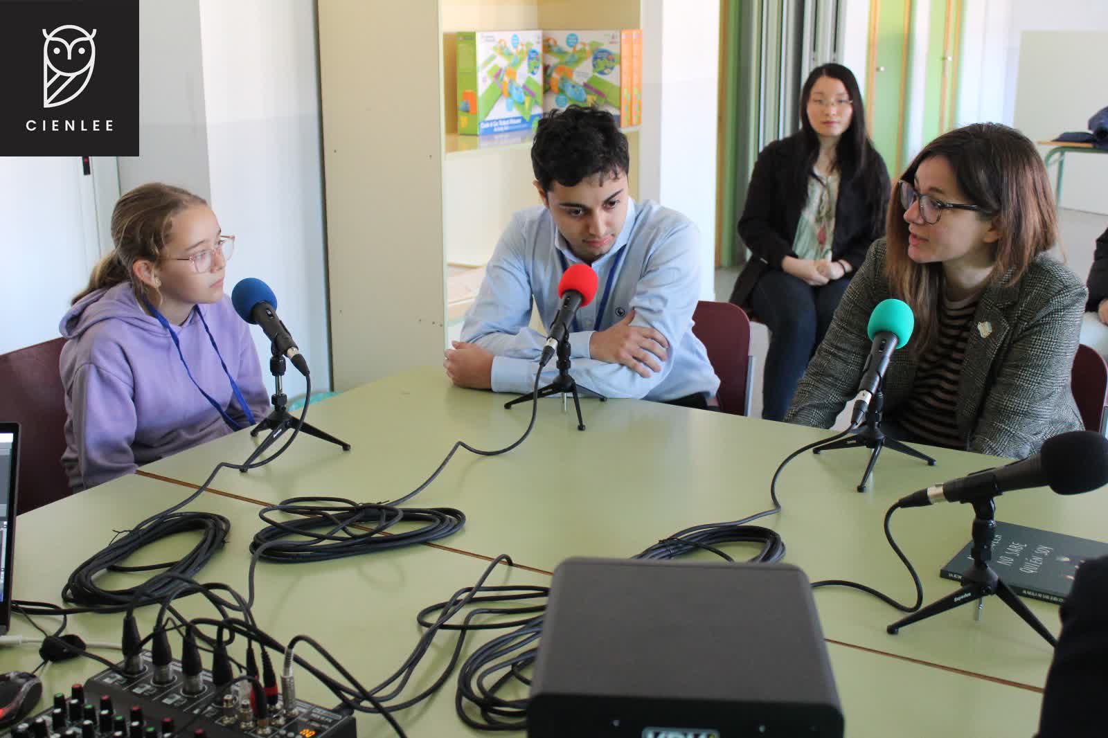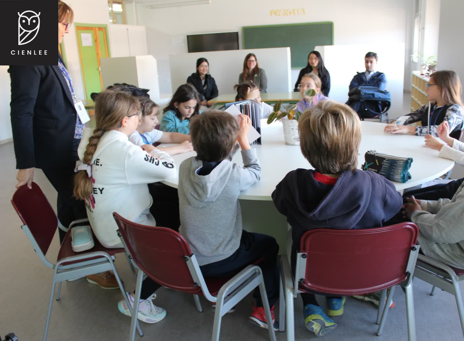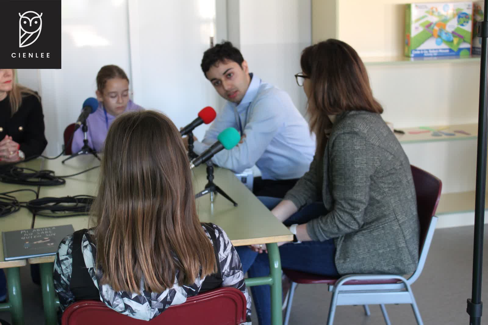 El grupo de embajadores Cienlee esperaba a Iva en la Sala del futuro con gran entusiasmo, ¡no todos los días viene una escritora de Croacia a vernos! Nos organizamos alrededor de una de las mesas mientras Iva se disponía para el turno de preguntas que había preparado el grupo. También tuvimos en cuenta que, si bien Iva comprende español, teníamos que contar una vez más con nuestro traductor de viajes, Rodrigo que en todo momento estuvo acompañando a Iva y traduciendo de forma simultánea en sus presentaciones en Quintanar de la Orden.