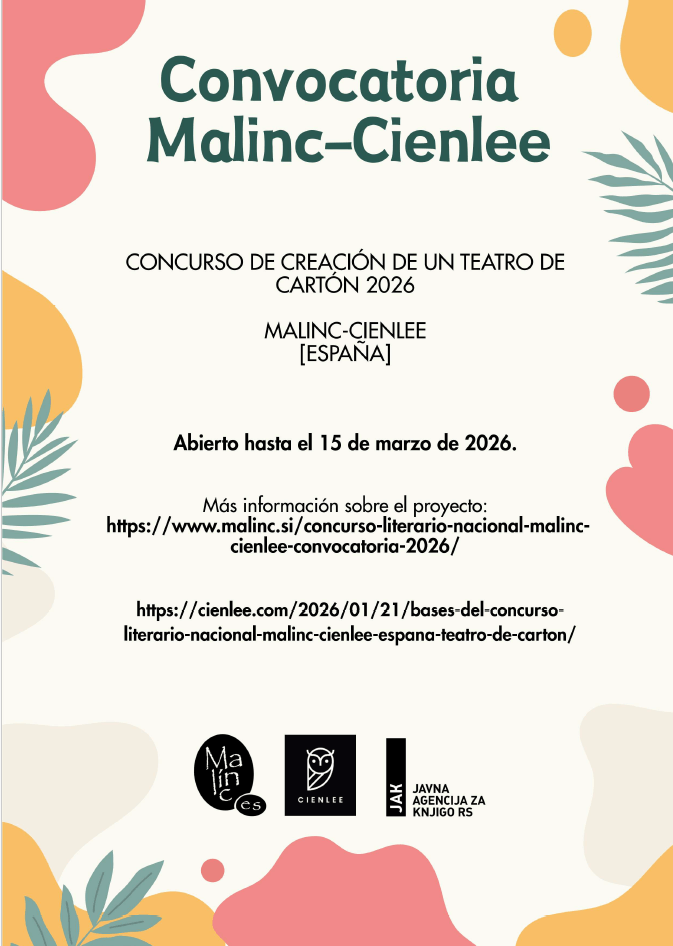 Compartimos las bases del Concurso Literario Nacional Malinc-Cienlee Convocatoria 2026 (Edición España) que versa sobre la creación de un teatro de cartón. El inicio de la convocatoria tuvo lugar el 15 de enero de 2026 y discurrirá hasta el 15 de marzo de 2026. ¡Os animamos a participar! 🎭🏆