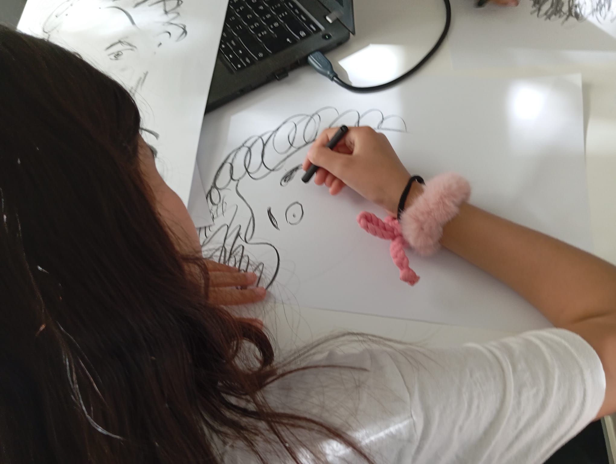 La presencia de un creador de su dimensión artística dio a estas jornadas una intensidad singular. Lejos de limitarse a impartir un taller, Tomsich abrió un territorio de exploración compartida en el que participantes de entre 7 y 13 años pudieron acercarse al retrato no solo como imagen, sino como pregunta, reflejo y posibilidad.